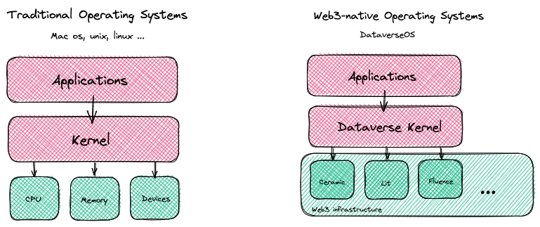 DataverseOS is similar to modern operating systems such as Linux, consisting of four important components